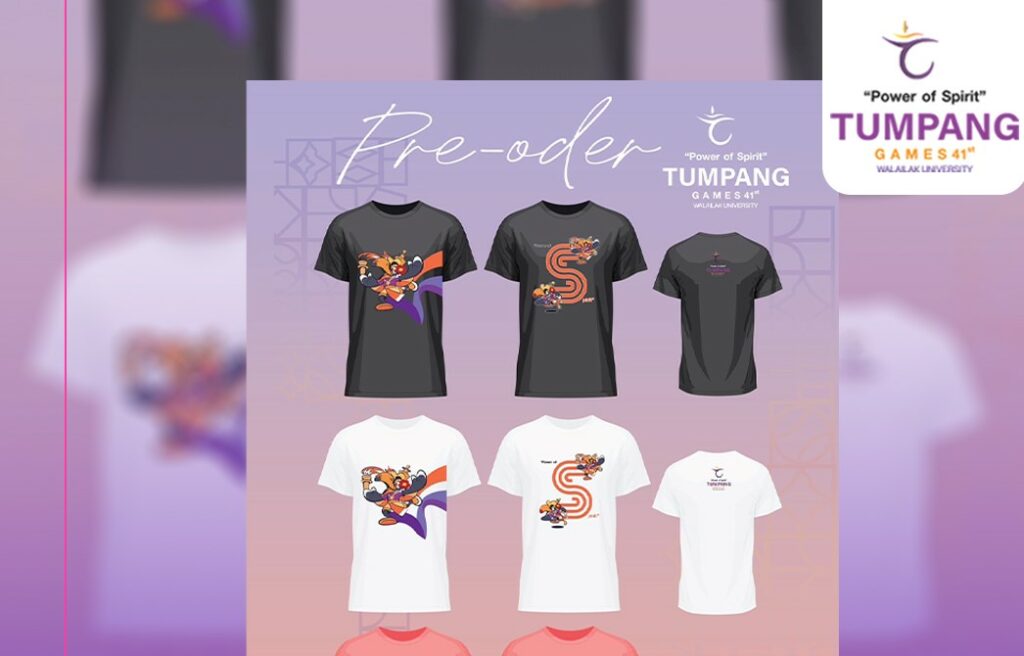 #เสื้อยืดของที่ระลึก สำหรับมหกรรมการแข่งขันกีฬาบุคลากรมหาวิทยาลัยแห่งประเทศไทย ครั้งที่ 41 ประจำปี 2568 “ตุมปังเกมส์” ระหว่างวันที่ 3-10 พฤษภาคม 2568 ณ มหาวิทยาลัยวลัยลักษณ์ อ.ท่าศาลา จ.นครศรีธรรมราช >>เปิดรับตั้งแต่วันนี้ ถึง 31 มี.ค. 68 รับสินค้าได้ตั้งแต่