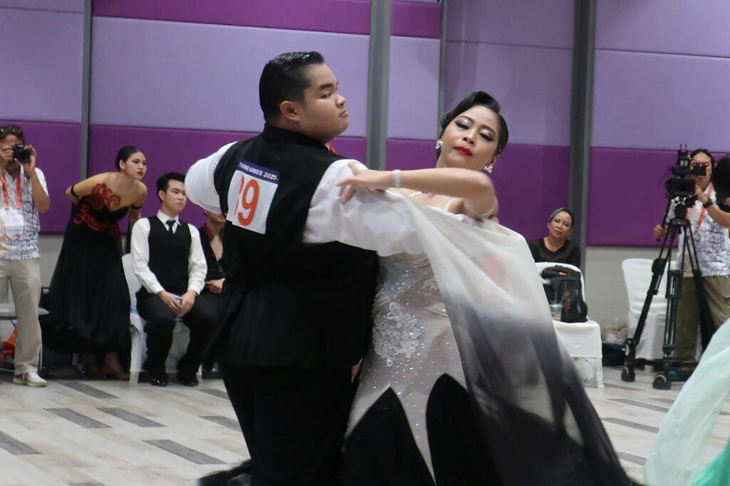 ว่าที่ร้อยตรี วรวิทย์ ประดิษฐการ และรศ.ดร.ลักษณ์นารา ขวัญชุม จากมหาวิทยาลัยวลัยลักษณ์ โชว์ผลงานโดดเด่น คว้า 2 เหรียญทอง ลีลาศรุ่นทั่วไป ประเภท สแตนดาร์ด ในจังหวะวอลซ์ และ จังหวะแทงโก้ วันนี้ (8 พ.ค.’68) ในรอบชิงชนะเลิศการแข่งขัน