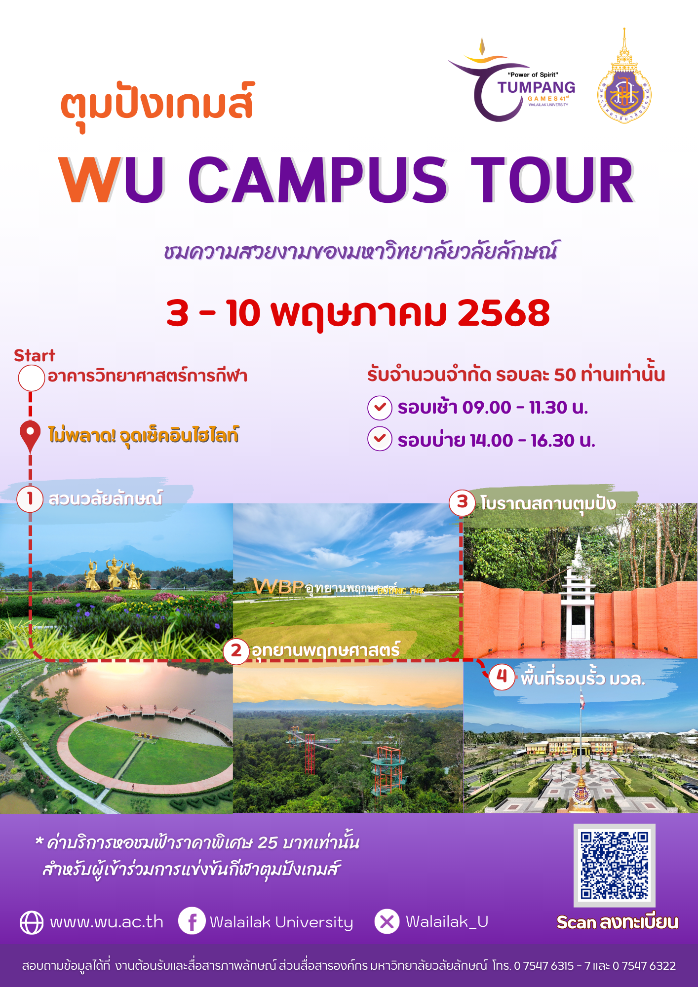 ขอต้อนรับสู่เมืองมหาวิทยาลัยดินแดน 9000 ไร่ ขอมอบความสุข…ทัวร์ความสวยงามของมหาวิทยาลัยวลัยลักษณ์ เพราะเราจะเป็นมหาวิทยาลัยที่มี Campus สวยที่สุดในประเทศไทย(ภายใน 2 ปี) WOW!!! Walailak “WU Campus Tour”