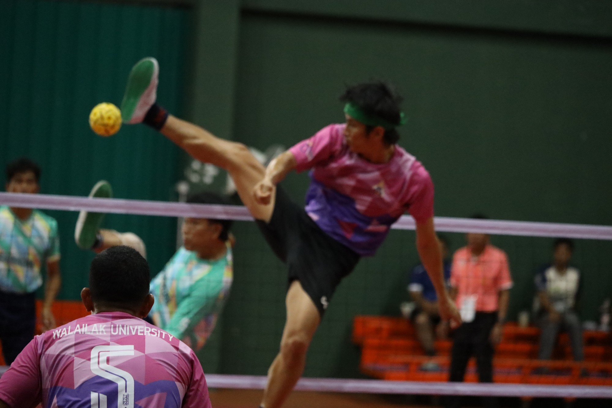 การแข่งขันเซปักตะกร้อ รอบแบ่งกลุ่มในมหกรรมกีฬาบุคลากรมหาวิทยาลัยแห่งประเทศไทย ครั้งที่ 41 “ตุมปังเกมส์” ณ มหาวิทยาลัยวลัยลักษณ์ วันที่ 5 พฤษภาคม 2568 ทีมมหาวิทยาลัยศิลปากรสามารถเฉือนเอาชนะทีมเจ้าภาพ มหาวิทยาลัยวลัยลักษณ์ ไปได้อย่างสูสี 2-1 เซต